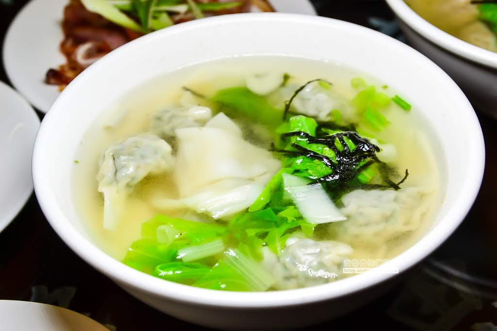 餛飩湯配上小白菜和紫菜絲,好懷念的古早味!餛飩湯吃起來是重口味,內餡的蝦味和鹹度頗高,湯頭喝起來清爽,又有紫菜香